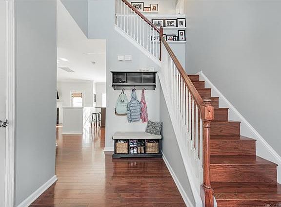 AMAZING 4 bedrooms 2.5 bath home offers open floorplan that flows from 2story foyer into living room and into expansive cherry wood kitchen w/2 islands and granite. French style refrigerator included. Second floor offers vaulted ceilings to all spacious bedrooms w/Large closet spaces. Laundry on the second floor. Few extras to list - crown moldings, hardwood floors throughout incl. stairs and partial second. Bedrooms are carpeted. Fully fenced back yard with large storage/shed. 2 car garage. Neighborhood offers basketball court, soccer field, playground and pond with seating area, paved walking track. Low Union county taxes! Ready for you to move in.