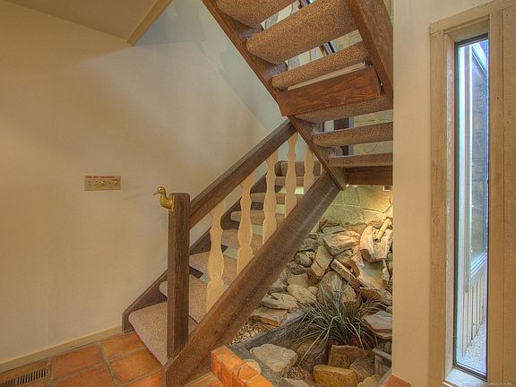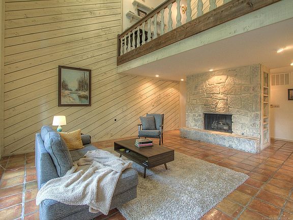 Well maintained, Colorado cabin look with lakes, located across from So. Hills CC, open floor plan with numerous windows, Living and Dining overlooking the main lake and smaller lake. New interior paint throughout Nov 2019, Updated kitchen w/granite, baths updated. 2nd living up w/FP, Charming rustic decor. Guest parking next to unit. Sprinkler System, Gated around deck and side area, professionally landscaped. 24- hour guard and courtesy patrol. Easy drive to Brookside, Riverparks and Gathering Place.