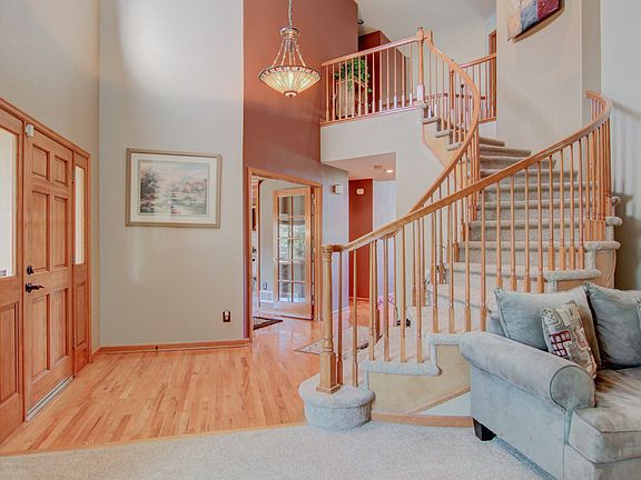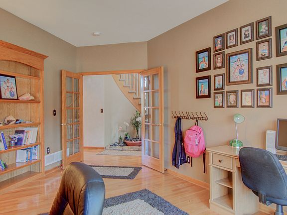 Amazing 5 bedroom, 5 bath family home with main floor office, fully finished basement complete with workout room, dry sauna, poker room and wet bar. Master bedroom suite features his and hers walk in closets, five piece bath and french doors. Three additional bedrooms upstairs with private bath and walk in closets. Gourmet kitchen features upgraded maple cabinets, Corian solid surface countertops with eat in breakfast nook overlooking the greenbelt. Main floor office has solid wood built-in shelving and full bath. Large 3 car garage featuring separate service entrance allows ample storage for bikes, mowers or motorized toys.