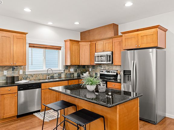 Move-in ready Traditional! Huge primary suite featuring a walk-in closet, spacious full bath, and balcony overlooking 11 acres at Mt. Scott Park + amazing Community Center! Smart floor plan with all bedrooms & laundry on the same upper level. Spacious main floor w/ high ceilings & a kitchen with all the bells and whistles. Charming low maintenance landscaping, fenced back yard w/ patio, raised beds, and space for your soirées! Minutes from lovable SE Foster and Woodstock. Walk score 83, bike 93! [Home Energy Score = 7. HES Report at https://rpt.greenbuildingregistry.com/hes/OR10206753]