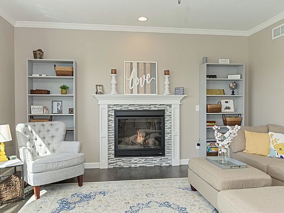 With modern farmhouse staging, fresh lighting, and new paint throughout, this home shows like a model! Backs to the trail in Grove at Kickapoo Creek with views of the gorgeous prairie and Benjamin Elementary school. 5 bedroom 3 1/2 bath. Large eat in kitchen with white cabinets, soft-close drawers, Stainless steel appliances, backsplash, big island, breakfast bar, granite counter tops, walk-in pantry and tile floors. Kitchen opens to the great room with gas fireplace. Sliding glass doors lead to the professionally landscaped backyard with no neighbors. Crown molding frames the windows and ceilings. Master suite has cathedral ceilings and walk in closet. En-suite boasts a custom-tile shower, double sinks, and a relaxing spa-like tub. Second floor has 4 bedrooms 2 full baths, walk in closets and window seat. Basement with 9 foot ceiling has large family room, spacious 5th bedroom and full bath. All 3 levels finished to perfection. Features custom trim details throughout, hand-scraped hardwood floors, French doors open to the flex front room. Bring your family home.