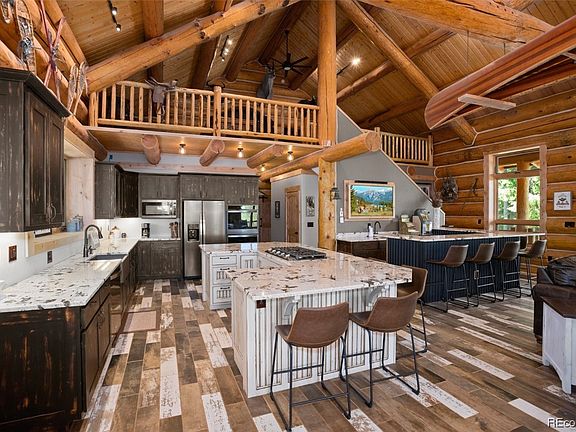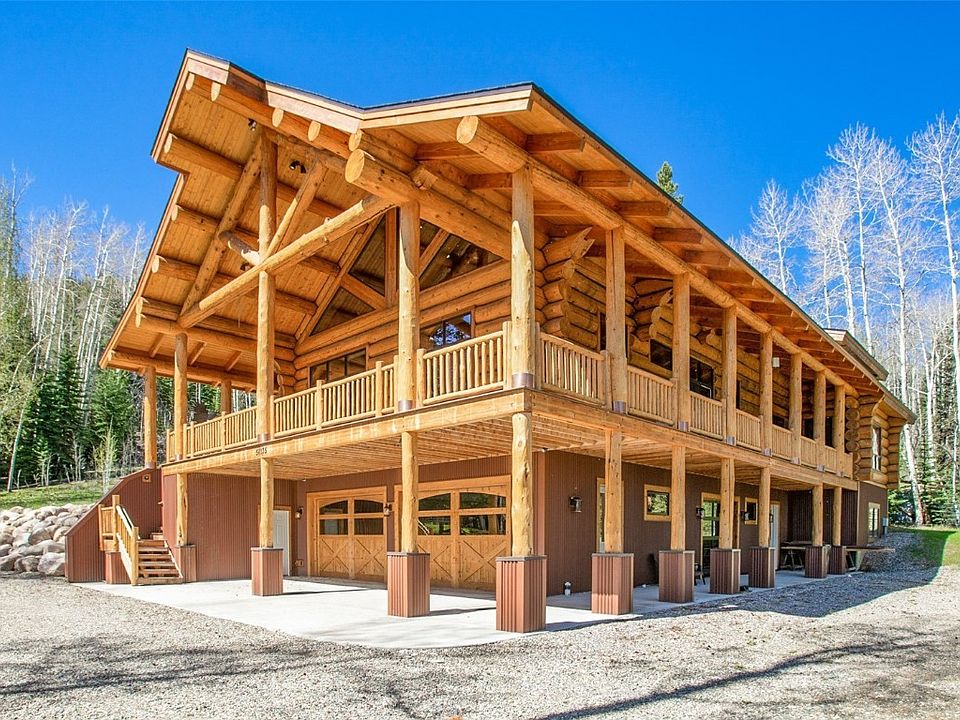 This magnificent Montana Log Home, custom-built in 2019, for the ultimate mountain experience. Situated on 5 acres of private forest adjacent to 491 acres open space and BLM land. This 5+bedroom retreat with the ultimate garage offers uninterrupted natural beauty with no homes in sight. Living in North Routt means world-class snowmobiling, hunting, hiking, cross-country skiing, & fishing/boating at Steamboat Lake, are only minutes from your front door. Surrounded by towering pine & aspen trees, the outdoor spaces of this luxury lodge are something to behold. A truly oversized, covered deck hugs nearly all the way around the home & looks out over the pristine mountain scenery. A dramatic covered patio out the front door extends the living space of the home & makes for the perfect gathering spot to enjoy the fresh mountain air. The “wow” factor continues upon entering the home. Vast windows bring in the outdoors, while soaring ceilings and Western Red Cedar logs offer a grandeur that only a custom log home can provide. The modern kitchen is made for entertaining with a huge island & a legit wet bar area. The comfortable living room provides ample room for friends & loved ones to gather around the wood burning stove & share stories from a day of adventuring. 2 master suites & an additional bedroom round out the main level. Upstairs you will find two additional bedrooms & a loft that doubles as a game & tv room—a prime relaxation spot when you’re not exploring in the outdoors. You might just think the lower level is the best part of this home. Pass the bonus room, custom mud room, spacious gear room, & open the door to the garage of your dreams! With 4-6 vehicle slots, snowmobile racks, workbench, custom shelving, a transparent garage door offering outdoor views, AND a rustic bar. Leave the busy world behind and make your way to 58135 Columbian Place, where the living is grand, adventure is plentiful, and beauty surrounds you everywhere you go.