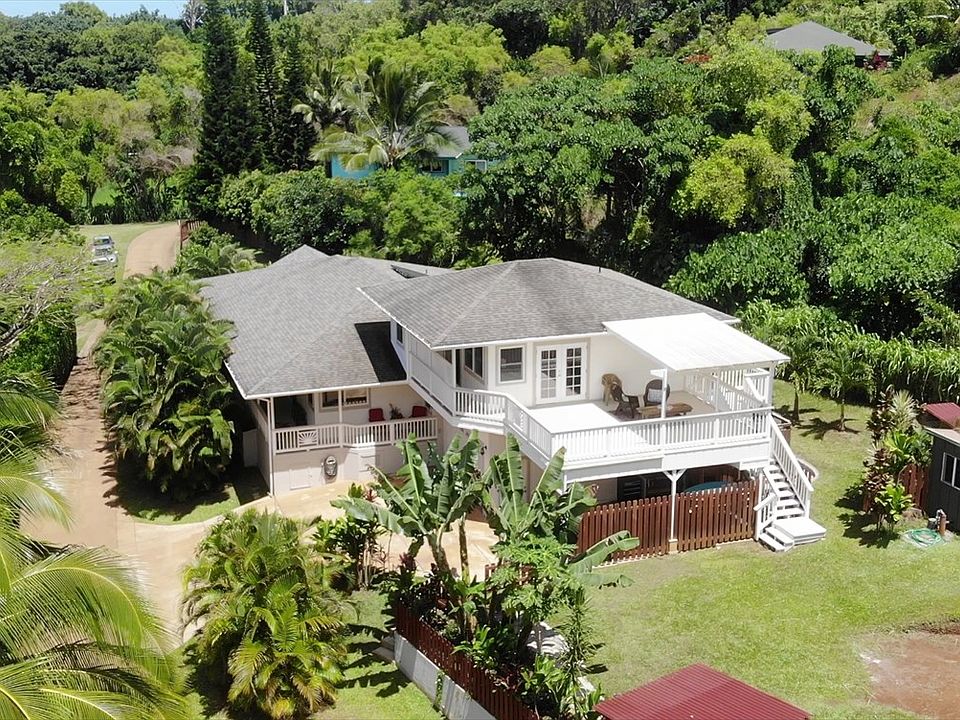 Sustainable living in a peaceful and tranquil setting can be yours. Custom built by a local Builder, this main-level living plantation-style home has the character and charm of yesteryear with today's modern amenities and efficiencies. An artesian well and solar water help make it sustainable, economical and the water quality is unparalleled. You'll love the attention to detail that shines throughout the entire property. Strategically placed and landscaped to allow for the best views of the valley, verdant Puu Kinui range and distant waterfalls, cooling trade winds, and a private, natural feel so you feel like you are in your own sanctuary away from hustle and bustle. No overhead air traffic make it very tranquil and quiet.Enjoy the bounty from a variety of fruit trees. Mature grapefruit, oranges, limes, lemons, avocado, mountain apple, banana, coconut will help keep you nourished. Plenty of sun and space for raised bed gardens, livestock and an area carved out and designed for a pool (see artistic rendering). An oversized covered structure is perfect for your boat, animals or hobbies. There is even a firepit for s'mores and room for badminton or volleyball.Relax and enjoy your favorite beverage under the stars, listening to the night chorus from the wrap around porch or elevated lanai. Only minutes from Kapaa town, yet a world apart. Minutes to surf waves and Kealia Beach, the Kapaa bike path and good hiking trails in your backyard for exploring. * Built in 2011* Structurally solid with cement-siding + 50 year roof* +/- 2716 sq ft* 3 bedroom / 3.5 bathroom* Flexible space upstairs with wet bar and separate entrance* Attached 2-car garage + carport* Outdoor kitchen area overlooking area planned for pool* Workshop space with sink* Outdoor shower and half bath* Fenced yard * Generous closets and storage spaceWhat are you waiting for? Now is the time to live your dream.