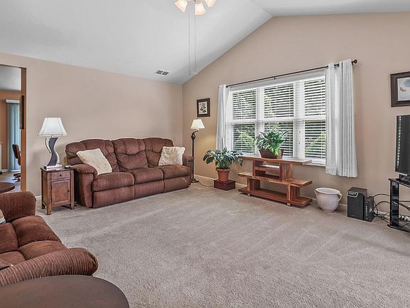 Very well-maintained ranch duplex in the desired Prairie Ridge Estates! Enter into an oversized foyer, that heads into the spacious living room with tons of natural light and vaulted ceilings. Plenty of counter space in the kitchen with pantry. 12x12 patio off kitchen in the backyard. Off the living room is the primary bedroom with walk-in closet and master bath. Another second bedroom and bath by the finished laundry room with utility closet and storage closet. Close to walking/bike trail, parks and shopping!
