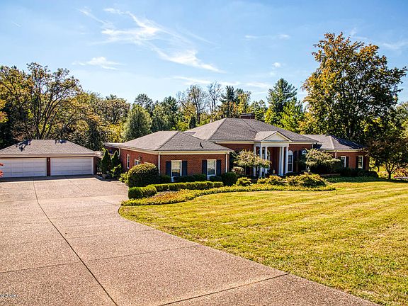 Wonderful opportunity to own and enjoy this classic Pruitt built sprawling ranch located on a well landscaped 2-acre lot in the most special community of Glenview. This elegant home features 5 bedroom and 4.5 baths, over 4,000 sq. ft. on the main level with an additional 1480 sq. ft. of finished area in the walkout level. Large well appointed dining room, updated kitchen with large center island, beautiful cabinetry, pantry, spacious eating area with large windows overlooking the beautiful rear yard. Lots of hardwood flooring throughout, split bedroom design gives way to a comfortable master suite, large walk in closet and separate bath area. From the entry walk two steps down and enjoy the warmth of the den fireplace giving way to relaxing with a favorite book or continue to a large year-round Florida room surrounded by windows with access to the rear yard. The adjoining gathering room also includes a fireplace, large windows, hardwood and wonderful trim work as does the entire home. The lower level of this home includes another laundry area, half bath, and large family room with bar plus direct access to the patio and treed yard area. The first level 4 car garage is accessed through a covered porch/patio area that shields you from the seasonal elements. There is also a workshop or storage area accessed from the breezeway. This location is very special as is the beautiful lot... located on a small private cul-de-sac off Lime Kiln Lane in the hills that border the Ohio River.