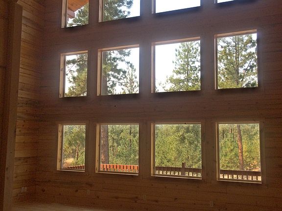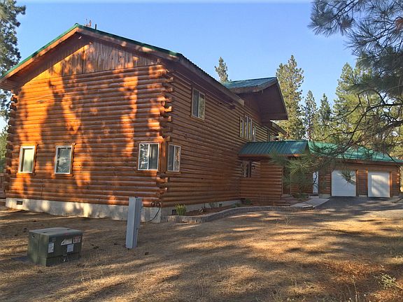 Spectacular Custom Built 2 Story Log Home comfortably nestled in the pines on 5 private acres bordering State Land. Spacious, main floor Master Suite with walk in closet, double sinks with granite counters Jetted Tub. Built in 2009, this 3523 finished square feet also offers 5 bed, 3 bath with 24' ceilings in great room. Large country kitchen with Granite counters and island. Main floor laundry, Formal dining, den, gas FA heat, Heat Pump and central AC. Public Water.
