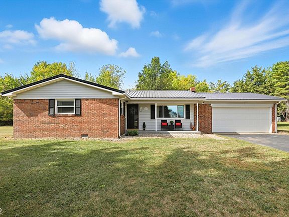Welcome Home to small town USA! Amazing updated Ranch situated on 1.68 acres. RARE FIND!! Open and Spacious flrplan, 3 Beds, 2 Full Baths. Nestled in the tranquil rural area of Sharpsville, Indiana, discover the inviting home awaiting at 5814 N 400 W in Tipton County. A single-family residence presented in ready to move in condition. The kitchen is designed with both beauty and function in mind, featuring shaker cabinets that complement with solid surfaces countertops and tile backsplash, creating a space where culinary creations and memories will come to life. Imagine beginning each day in the primary bedroom, where an ensuite bathroom offers a private sanctuary; the double vanity provides ample space, while a custom tiled walk-in shower promises a spa-like experience within the comforts of your own home. The porch offers a comfortable place to sit and enjoy the woods view, while the patio sets the stage for outdoor gatherings, and the shed provides practical storage solutions. You will enjoy looking at the stars at night while sitting around a campfire. Enjoy the expansive yard, mature trees and your own basketball court!! Metal Roof 5 years, Furnace 8yrs, Central air 6 years, Water heater 2 years. Easy access to US 31!! Tipton Community Schools!!