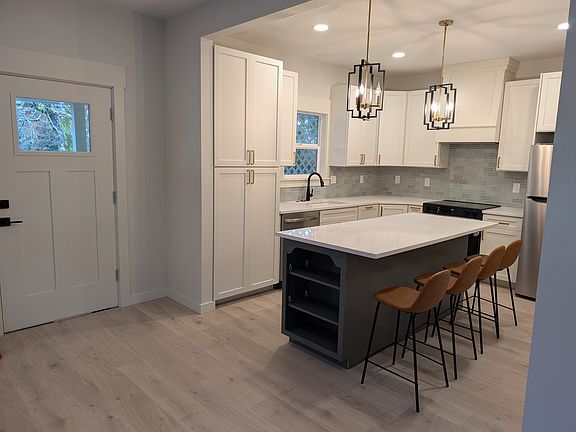 Get the comfort and privacy of this 2 bedroom, 1.5 bath house that has been completely remodeled with modern finishes and thoughtful design throughout. Featuring an open-concept floor plan, beautiful new flooring, tall ceilings, and a designer kitchen this home offers both comfort and convenience. There's a large deck, and fenced yard great for outdoor entertaining and your gardening ambitions! This home also has air-conditioning, in-home laundry, and off-street parking. Additionally there is a massive 20x20 detached garage for storage.
