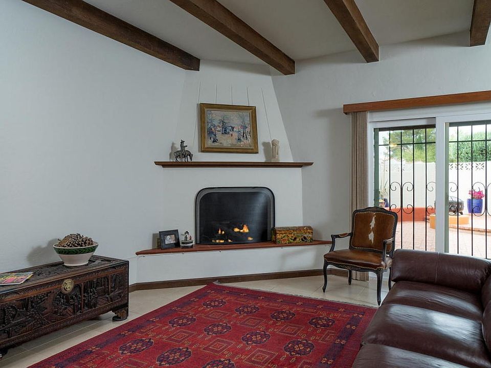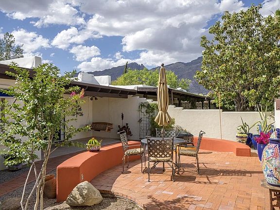This SPACIOUS 2 bedroom townhome has OLD PUEBLO CHARM & FOOTHILLS convenience. The GREAT ROOM features HIGH, BEAMED CEILINGS & a beehive fireplace. The eat-in kitchen features lots of cabinets & corian countertops. Updates include DUAL PANED WINDOWS, zoned Trane HVAC units (2011) , tile throughout & a remodeled master bath with SUBWAY TILE & a glass paneled shower. You'll find a large laundry room, cedar closet, 9 skylights & a 2 car garage.....TURN KEY! ENJOY sun or shade with a front gated courtyard & a PRIVATE back yard with covered patio & a porch swing. The location is close to shopping & restaurants. HOA covers water, fire, trash, structure insurance, front landscaping & the community pool.