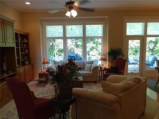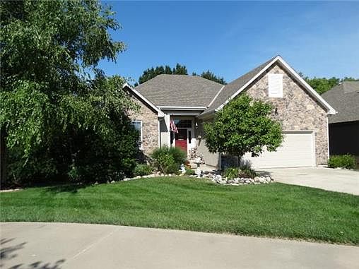 This perfectly well maintained, move in ready reverse 1.5 level home with a walk out basement has it all. The open floor plan is warm and inviting with large windows that let in plenty of natural light and reveal your serene view of the woods behind you. There's a full kitchenette, bedroom, bathroom, and bonus room in the finished basement perfect for entertaining or playing host to friends or family. You won't find a better location that offers close proximity to the airport for busy travelers, maintenance free lifestyle right by luxurious Tiffany Greens golf course, and just minutes from all the wonderful and relaxing shopping and dining amenities that Zona Rosa has to offer.