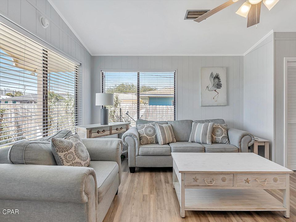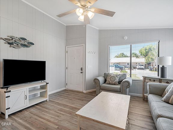 CURRENTLY UNDER CONTRACT, SELLER WILL CONSIDER BACKUP OFFERS. This cozy unit has been completely redone in coastal chic decor and has a privacy-fenced backyard, LVP flooring throughout, granite countertops, stainless appliances, farmhouse sink, smooth-top stove and full-size washer/dryer. Vaulted ceilings and a built-in desk. It also has a sleeper sofa in the living room so you can sleep 4 people comfortably. WALKING DISTANCE TO THE BEACH and you're 5 minutes to St. Andrews State Park and Grand Lagoon where you can enjoy 5-star waterfront dining. No HOA fees. Rental history provided upon request.