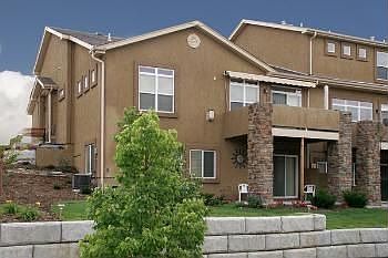This spacious upgraded ranch style town home has everything you desire for main level living! Built just 5 years ago, the home has the feel of a new home and has been meticulously maintained by the present owners. The stucco and stone exterior with an attached 2 car garage that is fully insulated and finished has a plethora of colorful flowering plants dotting the landscaping that surrounds the town home. Hardwood flooring stretches from the entry into the spacious entertaining kitchen. A raised breakfast bar is the perfect spot for friends and family to gather around. The stained upgraded maple cabinetry compliments the tile counters and the appliances. The main level laundry has been turned into a spacious pantry area in the kitchen area. A dining area and a great room with gas fireplace open to a deck that has great views of Pikes Peak. The master bedroom features a walk in closet and a luxurious master bath. A 2nd bedroom on the main level has a full bath and can easily be used as a study. The walk out basement is finished with a rec room, 2 additional spacious bedrooms, a full bath, and a laundry room. A sliding glass door opens to a concrete patio. Central air conditioning cools the home in the summer. The homeowners association fee includes trash pick up, snow removal, exterior maintenance, and lawn care. Lease Option Term available if you are having difficulty selling your home. Please contact us for more information.
