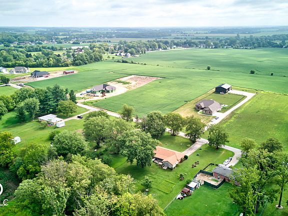 Looking for an all-brick ranch with land and a workshop close to New Palestine and Greenfield? This may be your new home! The property features a new front porch that opens to a sunny great room with a large bay window. The eat-in kitchen boasts plenty of cabinet and counter space with all stainless appliances included, opening to a large deck overlooking almost one acre. There are three spacious bedrooms, with the primary bedroom having an ensuite bath. The finished lower level offers fantastic space to entertain, featuring a family room with a wet bar, a private office, and ample storage areas. The pool table is included with the home. Don't miss the huge workshop or third car garage at the back of the home, as well as the two-car finished garage in the front. There's plenty of space for a garden or outdoor picnics and fun with friends and family or maybe enjoying a s'mores this fall sitting around the firepit.