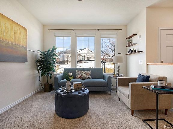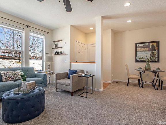 Dancing Willows Townhouse w/ 2 Car Garage & Finished Basement. 3 Bed/3.5 Baths, New Paint, New Carpets. Office Nook Upstairs w/ Built-In Bookshelves. Updated Kitchen w/ Stainless Steel Appliances, 42" Raised Panel Cherry Cabinets, Stained Oak Floors & Over-Sized Pantry! Brushed Nickel Ceiling Fans & Door Hardware, Modern 3 Panel Designer Doors, Gas Fireplace w/ Tile Surround, UPSTAIRS LAUNDRY! 3 Panel Frosted Glass French Doors into Primary Bathroom. Honeycomb Shades in Primary Bedroom, New Energy Efficient Furnace, Central AC, Great Natural Sunlight Throughout, Overlooking a Green Space, Easy Access to Walking Trails, Mountains, Downtown or DTC and Close to Southwest Plaza Mall Shopping Center, Plenty of Dining Options.
