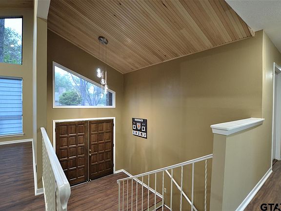 Stunning home in the heart of south Tyler close to the best shopping, dining, medical facilities, and entertainment Tyler has to offer. Driving up you will fall in love with the lush landscaping, mature shade trees, and mid-century modern architecture. Stepping inside you are welcomed into the grand entry with soaring wood beam ceilings. Up the steps is the main living area with rich laminate floors, floor to ceilings brick, wood burning fireplace, and surround sound speakers. Formal dining plus eat-in kitchen gives you ample space for entertaining guests. Enjoy your morning cup of coffee on the large deck that backs up to a greenbelt. Expansive downstairs living room is a great place for kids and teens to gather or would make a great office or school room. Spacious side yard is a great spot for kids and pets to run and play. Come see all this incredible home has to offer. Call for your private tour today and check out our 4D virtual tour.