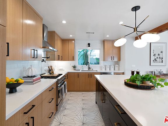 An Emblematic 1961 Mid Century Modern dwelling infused with the vibrant essence of Los Angeles. Gated and very private, the residence is situated on a quiet and desirable street in Valley Village, this timeless architectural features a substantial Pool perfectly privatized by verdant hedges and a custom-built Pergola. Step beyond the private gates into the lushly landscaped and vaulted courtyard to the inviting double doors, which opens to a modern chic, open floor plan. Updated chef's kitchen with sizable island overlooks the formal dining area and cozy living room with a floating fireplace. Venture into the separate wing, unveiling four generously proportioned bedrooms, including a lavish primary suite adorned with domed ceilings. The expansive updated primary bath boasts dual sinks and a luxuriously comfortable walk-in closet. Exhibiting a seamless fusion of Mid-Century Charm and contemporary luxury, every corner of this residence has been thoughtfully enhanced while maintaining architectural purity.