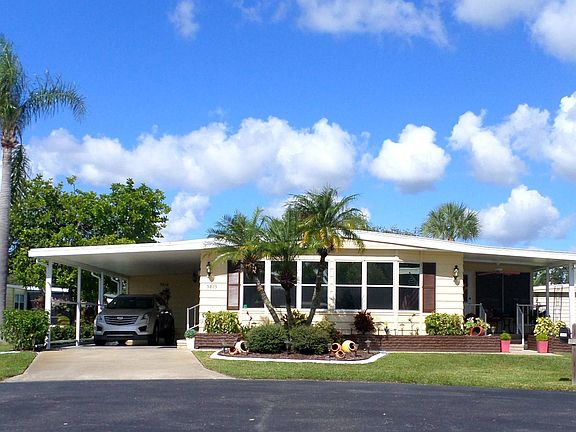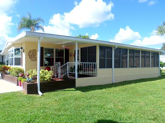 This immaculate, picture perfect home with 1700 sf of comfortable living space is located on an extra-large lot and on a quiet cul-de-sac with plenty of relaxing green space between neighbors and just steps to clubhouse with heated pool, whirlpool, sauna, fitness center, sports courts and more! A very popular floor plan, the home flows nicely from the spacious living area through to the open heart-of-the-home kitchen with eat-in space or cozy family room and onto a very peaceful and relaxing 275 sf Florida room with an amazing view! Two side entries allow options when welcoming guests or quick access to the bath and hall storage off the second entry after a warm and sunny day at the beach. Many upgrades include plywood subflooring installed in 2018 plus new laminate and carpet top flooring, a 2017 membrane roof with lifetime transferable warranty, 2019 Goodman HVAC and Aeroseal duct sealing, 2017 stainless kitchen appliances, 2019 complete exterior cleaned and painted and a cozy fenced patio installed, new screens in absolutely every window 2018 and PVC plumbing throughout. The home is offered unfurnished and ready for you to make your it your own! Camelot Lakes is a beautiful, gated resort-style community where your monthly lot rent includes water, sewer, trash/recycling curbside, lawn maintenance, taxes and endless upscale amenities and organized activities. All shopping needs, great restaurants and entertainment are just minutes away via quiet back roads or easy I-75 access. Tired of having everything at your fingertips? Take a 7 mile drive to the beautiful white sand beaches of Siesta Key. Throw out a line, take a dip or enjoy an energizing walk along the shore. A never ending supply of quaint shops, top restaurants and the nicest people you'll ever meet! LIVING ROOM (14.5 x 24) Attractive front entry for guests includes a sturdy picture storm door. The spacious great room has tinted bay windows, new lighted ceiling fan and carpeting. DINING AREA (8.5 x 11.5) Built-in display and storage cabinet with lighting and 3-light bowl pendant chandelier, laminate flooring. KITCHEN (14.5 x 14) A great kitchen for entertaining with center island and pendant light accents, and pass-thru window to the Florida room! All new stainless appliances, granite look countertops and laminate flooring. Abundant storage plus a large pantry. HALLWAY/UTILITY & STORAGE CLOSET/SECOND ENTRY - Large hallway area includes utility and/or storage closet and access to guest bath. An entry for everyday living with laminate flooring. DEN OR DINING ROOM OFF KITCHEN (11 X 14) Sunlit with large sliding doors overlooking the Florida room. Built-in display and storage cabinet with lighting. Lighted ceiling fan, laminate flooring. FLORIDA ROOM (10 x 28) This is where you'll spend a lot of your time folks! Ohhh-sooo relaxing Florida room with built-in A/C unit has new carpeting, tropical palm ceiling fan, real vertical slide windows and quality UV blocking privacy shades that still allow you to enjoy the beautiful view. Outdoor access to a quaint and comfy front porch just perfect for your morning coffee. It feels like vacation every day! MASTER BEDROOM (11.5 x 14) King master with 5' x 6' walk-in closet and a super-sized en suite with vanity & dressing area and a separate room with walk-in shower, garden tub and comfort height commode. Laminate flooring. GUEST BEDROOM (11 x 11) Perfect size carpeted room for your guests with walk-in closet and access to main bath with tub/shower combination. PAVER PATIO - Great place for your grill and the picnic table. Privacy fence with gate. Store your golf cart here! EXTERIOR, STORAGE SHED (8 x 10) Large storage shed with washer & dryer. Extra-long drive will park three cars comfortably. Carport over drive has been insulated for mildew resistance.
