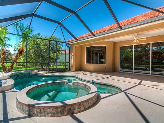The Preserve at Tara. Excellent opportunity for a quality built Lee Wetherington Opal model with 3BR, 2BA, and pool and spa on a beautiful, over 1/4 acre cul-de-sac lot overlooking both lake and golf course. This Great Room Floor plan has almost every upgrade offered by the builder, such as a gourmet kitchen with glazed finished solid wood cabinets, granite counters, built in stainless steel appliance package, and additional built-in dry bar, matching built in buffet in dining room with glass upper cabinets, undercounter lights, granite counters, custom moulding, upgraded tile floors on diagonal with marble details, new carpet in bedrooms, and wide plank wood floors in den/suite 3, extensive crown moulding throughout the home, tray ceilings with cross details in great room, dining room and master bedroom, upgraded front doors, custom built- in closets in master bedroom, upgraded cabinets and tiles in large master bathroom. All freshly painted with new carpet. Peserve at Tara is a semi-private golf course community with easy access to prime shopping, restaurants and beautiful Gulfcoast Beaches. Call today for showing!