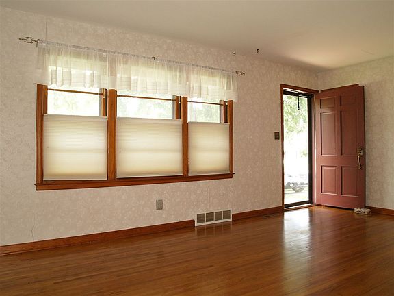 Well maintained 1 owner home with unique charm starting with the stained cedar siding exterior of the home. The home has real hardwood floors through out the home including in the kitchen. 18 X 13 living room with large windows. There are two bedrooms that would make great master bedrooms. One bedroom has 3 closets, one which is cedar lined and has room darkening blinds. The 2nd bedroom at the back of the home has a half bath attached and a pocket door between it and the 3rd bedroom making it a perfect spot for a nursery or office. The 3rd bedroom has a built in children's desk and charming shudders on the windows. The kitchen has lots of counter and cabinet space including a spice closet and small pantry. There is a pass through between the kitchen and the dining room. The separate dining room has a built in hutch for additional storage. There is also a multi purpose hobby room and a large mud/laundry room. The detached 2 car garage is heating and cooled, perfect for the mechanic in the household. Check out this one before it is gone!