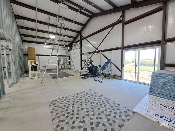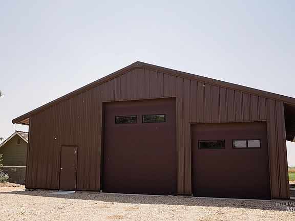 Shop is Huge, Brand new and Loaded. Rural living at its best. Beautiful acreages includes a spacious brick mid-century modern home with 2 car garage plus a super nice new 2400 SF shop to store your RV and boat or use for work and hobbies. The shop is equipped with Commercial gas pressure, heated floor, roughed in plumbing for bathroom and living quarters. Yard and pasture have auto sprinklers. No rear neighbors with views of the Owyhee Mountains. This must-see home has been renovated while maintaining its charm with an open floor plan, master ensuite, finish basement with egress windows, granite, tile, wood flooring. The large windows invite the outdoors in. Garden includes raspberries and grape vines. Mostly fenced. Peaceful shady patio, treehouse, fruit trees... Bring your toys, RV, horses, chickens..Minutes from I-84. NO HOAs. Amenities list & shop details under documents. 40'w x 60'd. 4 garage doors, 1@ 12'x14, 2@ 10'x12',1@ 10'x10'. Receptacles 200 amp. Commercial compressor. Zoned for home occupation.