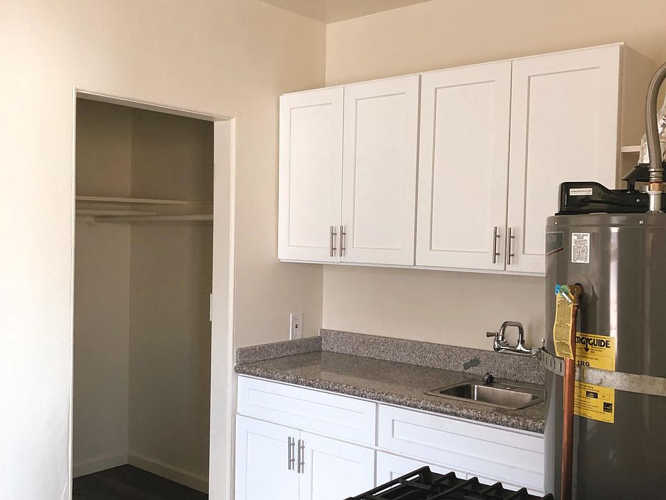 Freshly remodeled studio unit located on a quiet street in Seminary neighborhood with updated cabinets, flooring, shower, toilet, sinks, security bars and gates. Shared parking lot with automatic gated entry. Laundromat .4 miles away (1 min drive without traffic/7 min walk.) Owner pays for water. Tenant pays for electricity/gas. Last month's rent due at signing. No smoking.