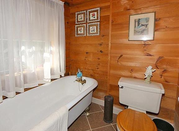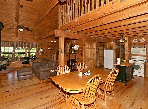 Originally built in 1993, with updates, this Honest Abe log home with 8" D shaped logs, and tongue and groove partition walls is a must see. Wide plank flooring installed on main level and stairs in 2005. Second floor loft/sitting area, with enlarged master bedroom and walk in closet, as well as updated corner shower and lighting in master bath. Main floor has entry from large covered front porch. Large, open living room, dining room and kitchen includes breakfast nook and island. Two bedrooms on the main floor. One could be used as a master bedroom with a pocket door that enters from the bedroom to the bathroom. The main floor bathroom has a claw foot tub that was professionally refinished approximately 2 years ago, as well as new ceramic tile floor and baseboards. The last bedroom is currently being used as a second TV room, with a built in entertainment center, but can easily be converted back to the third bedroom. The basement was finished approximately 8 years ago.