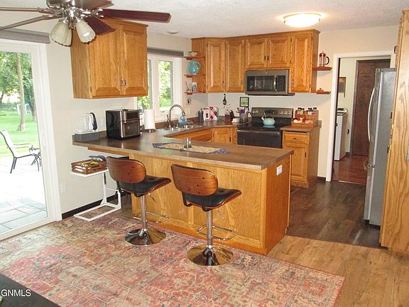 Rural living only minutes from Bismarck city limits. This home is located in the Ponderosa Riverside subdivision and has easy access to Bismarck/Mandan. While driving up to the property you will be surrounded by large trees in every direction that hosts abundunt wildlife and provides privacy. Upon entering this ranch style home you will have plenty of room in the large entrance foyer which opens up to the large living room complete with a wood burning fireplace and a large picture window. The completly updated kitchen and dining room join the main living space together for an open floor plan perfect for entertaining. Down the hall you will find three bedrooms and a large full bathroom and on the other side of the kitchen is the main floor laundry and another bathroom. There are two doors leading to the back yard and a door leading to the attached double garage. The garage is heated and insulated. The beautiful yard will impress you in every direction. Step outside through the dining room onto a new paver patio to take in the private backyard and enjoy country living. The front of the house also has a nice covered patio for relaxing. This also is part of the park association that provides use of the private boat ramp and park area for just $35 annually. There is also a garden shed next to the garden and firepit in the yard. Updates in the last few years include: new kitchen cabinets and appliances, all new flooring in the home, new windows, new roof shingles, a paver patio and two electric mini-split heat/AC units on an off peak meter. You will not want to miss this one. Call your favorite Realtor today to schedule a showing.