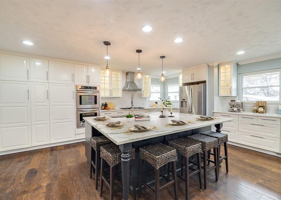 Welcome to this thoughtfully updated home featuring 1.63 acres, no HOA, finished basement approx. 527 sf not included home's sf, two 2-car carports for additional covered parking, space for RV with hookup, and an 8x24 outbuilding. The curb appeal continues on the inviting large covered front porch. Inside, the kitchen has been beautifully updated to include Danby marble counters, 5-burner gas cooktop, double ovens, Bosch dishwasher, and soft close cabinets with pull out drawers and custom organizing features. The kitchen island is a delight with its generous counter space, divided farm sink, built-in storage, and comfortable seating for 6. The dining area is embellished by its original custom-built Tigerwood buffet with glass-front upper cabinets and plenty of drawer and cabinet storage below. Both the kitchen and dining areas are open to the spacious main living area with its handsome stacked stone fireplace with new gas logs, and views to both the front and back yards. The openness flows into the front living space with its charmingly detailed mock fireplace and beautiful natural lighting. The stylishly updated primary bath features a two-person shower and double vanity, plus a jetted tub, marble counters, soft close cabinetry, and private water closet. Throughout the home are attractive engineered hardwood floors and previously updated windows. The expansive covered patio and open space beyond offer plenty of room for relaxing, entertaining, gardening, and taking in seasonally gorgeous perennials and fruit trees. Schedule your showing today!