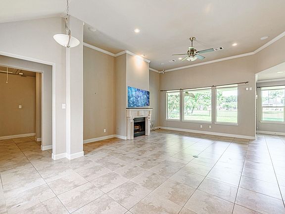 Beautiful 1 story spacious brick home that backs up to the golf course. There is a 2 car attached garage and another 1 car attached garage that would be perfect to store your golf cart in. The home has an open floor plan with 3 bedroom & 2.5 baths. The family room has wall of windows overlooking the backyard & golf course, high ceilings, tile flooring, a beautiful fireplace and mantle. The kitchen opens directly into the family room, dining room and breakfast room. The kitchen has two breakfast bar areas, one on the side of the family room and another on the large kitchen island complete with a built in wine fridge. There's an abundance of cabinet and counterspace. The primary bedroom features oversized windows overlooking the backyard, high ceilings, en suite bath and a fabulous walk in closet. There is a flex room that features tile floors, high ceilings, natural light and would make a great game room, office space or play room. There are two covered patios in the fabulous backyard.