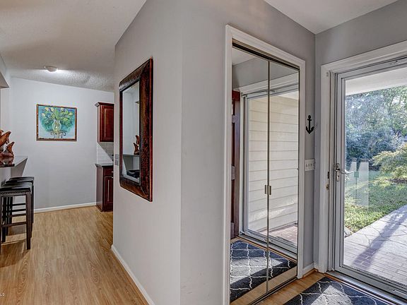 Overlooking beautiful Bradley Creek, this updated Wrightsville Green home includes adjacent water front lot! Located at the end of a quiet cul-de-sac and abutting wooded common area, this home offers all the view and privacy you could hope to find. Located just minutes from Wrightsville Beach, Airlie Gardens and Mayfaire, the convenience and accessibility make this lot and house package a rare ''in the bubble'' listing. With a new roof, HVAC, granite/stainless kitchen, master bath and sunroom, this is move-in ready. Enjoy the community pool, having access to Bradley Creek and be sure to check out the moveable sliding screen wall in the garage!