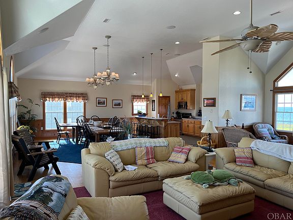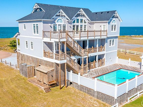 Welcome to your dream coastal retreat in the picturesque Village of Hatteras! This magnificent 7 bedroom semi-sound front home offers an unparalleled experience with breathtaking water views from every room. Step inside this meticulously designed property and be captivated by the seamless blend of luxury and comfort. The spacious open living area features the master bedroom on the third floor and three additional ensuite bedrooms on the third and second level, large windows that not only maximize the natural light but also offer uninterrupted vistas of the sparkling sound. Imagine the relaxing evenings with the awe-inspiring sunsets captivating the serene beauty of the surrounding waters. The well-appointed kitchen is a chef's haven, offering ample countertop space along with an island that features a built-in icemaker. Adjacent to the kitchen, the dining area offers a perfect place to gather and enjoy delicious meals with loved ones, all while soaking in the panoramic water views. This incredible home boasts hardwood flooring throughout, cathedral ceilings in the living room which adds to the spacious feel already giving by the expansive windows offering gorgeous water views. On the lower levels you’ll find additional bedrooms that will haply accommodate guests. They’ll find entertainment within the second living room, two wet bars with refrigerators, and game room with pool table! Thoughtful design and exuding coastal charm shows throughout the whole house! As you venture outdoors, you will discover a paradise-like setting. The private heated pool invites you to take refreshing dips and bask in the warm sun rays. Enjoy drinks by the pool side at the tiki bar or unwind in the soothing hot tub while savoring peaceful evenings and cherishing the tranquility of coastal living. The expansive deck space is ideal for soaking up the sun or simply enjoying water view in the company of loved ones! The property is conveniently located right across from Hatteras Harbor Marina, making it an ideal choice for boating and fishing enthusiasts. Additionally, it is in close proximity to the top voted Buxton beaches, providing guests with easy access to sun, sand, and the beautiful ocean. Moreover, the area boasts a vibrant culinary scene, with numerous local restaurants offering fresh local seafood! For those interested in shopping, there are also a variety of boutique shops and retail outlets nearby, ensuring a delightful experience. Being located just down the street from the Ocracoke Ferry you can explore the uniqueness of the island and visit one of Blackbeard’s hideouts while there. Beyond its exceptional amenities, this home presents an excellent investment opportunity! Vacasa rental projection for 2024 is $232,700!! Located in a highly sought-after area, it attracts vacationers seeking both relaxation and adventure. Whether it's fishing, boating, kayaking, or exploring the beautiful nearby beaches, the possibilities are endless for creating unforgettable memories. Don't miss this remarkable opportunity to own a coastal paradise with unrivaled water views, luxurious features, and excellent rental income potential. Embrace the serenity of Hatteras, NC, and experience the ultimate coastal lifestyle. Schedule a showing today before its too late!! Please note: 58154 Hatteras Harbor Ct is currently a soundfront vacant lot. Were a house to be built on the lot, it may obstruct sound views slightly. -New roof and HVAC in 2021. VIRTUAL TOUR LINK!!! https://unbranded.youriguide.com/58157_hatteras_harbor_ct_hatteras_nc/
