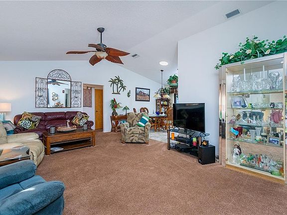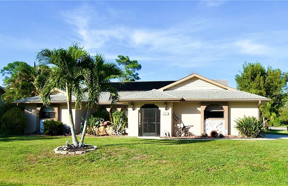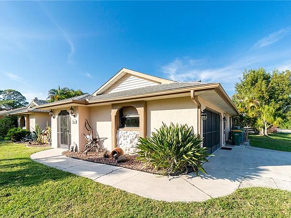 If you've got toys, we've got the home for you! Double corner lot with extra parking for your boat or RV and a 14x40 shed WITH electric. Add a community boat ramp to the Myakka River for a mere $50 per year and your dream is complete in this waterfront community of Gulf Cove. For those looking for a bit of comfort after a day of fishing you can enjoy the private area on the 9x30 covered patio, take a soak in your solar heated in ground pool with auto cleaning and an upgraded variable speed pool pump under the 42x14 screened in pool area. Grab a bottle of wine from your built in wine cooler and sit back and enjoy the beautiful landscaped rear yard with fruit trees and mature plantings. The owners of this split bedroom home, with cathedral ceiling in the main area enjoy access to the enclosed lanai from the sliders in the master, guest and dining areas. After a full day just relax in the living room and enjoy your built in electric fireplace. This custom home offers so much it is hard to list, corner property with these kinds of amenities are hard to find. Surely a home to please everyone.