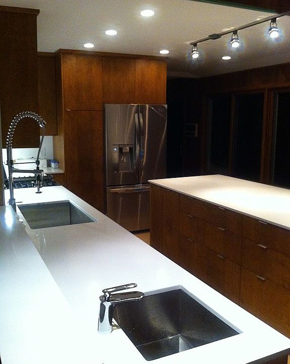 Warm natural materials throughout, in mid-century style. Good vibes, great floorplan. Spacious rooms, reclaimed hardwood floors, completely remodeled and expanded kitchen in 2014. Walk-out lower level. Three fireplaces, with masterful California lava stone central stack dominating the main floor. Private setting on wooded lot.