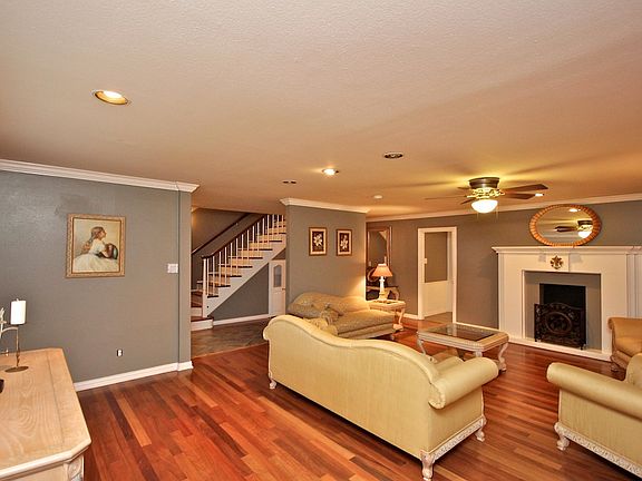 Don't let this 6 bdrm, 3.5 bth custom home pass you by. Situated on mature lot. Home features hardwood floors, crown molding, fresh paint, & plantation shutters. Kitchen offers marble countertops, double ovens and adjoins fmly rm with built-in cabinets and shelves. Study showcases lots of custom built-in wood bookcases. 3 lrg bdrms on main flr with built-in dressers and Jack and Jill bth between 2. Master bedroom retreat with spa-like bth featuring dual sinks, jetted tub, separate shower w glass blocks, bidet and 2 closets. 2 add'l bedrooms complete the upper level. Outside has firepit, stone fountain, patio, raised garden bds, gate for RV parking swings back for full access, and side yard with brick fireplace.