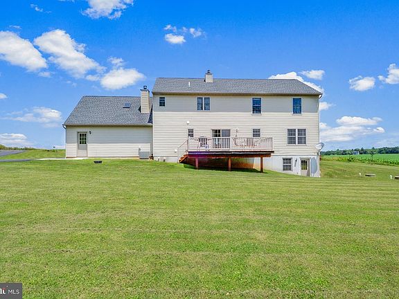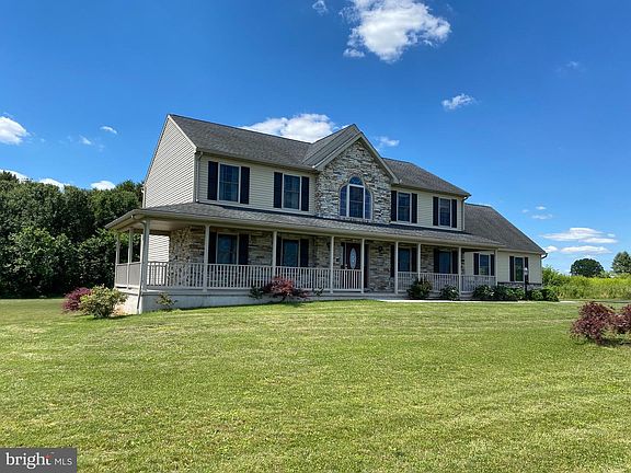 One-of-a-kind custom-built home by J Myers. 4x6 construction on a flat lot. Stone front, large wrap-around porch, maintenance-free exterior, the foundation is superior walls. Surrounded by farmland with breathtaking views. Very private setting off the main road. Kitchen level laundry/mudroom. Nice size deck off kitchen. Corian kitchen countertops with lots of cabinet spaces. The second floor offers an office area with a large palladian window. Large 24 x 24 attached garage. Lots of closets throughout the house. The owner's suite boasts a dressing room with double his and her closets and a gas fireplace. Large owner's bathroom with separate shower, double vanity, jetted tub for two, and a water closet. Full walk-out basement and framing, rough-in for a full bathroom. Radon system already in place. Upgrades galore. Close to the MD line. No HOA