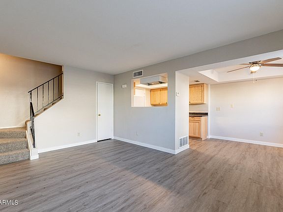 This newly remodeled Townhome is move-in ready! Private Courtyard & Storage room welcome you to the open Family room space. Kitchen features new Countertops and Cabinets & offers adjacent dining area. Downstairs also offers inside Laundry room hookups and Half bathroom! 2 large bedrooms upstairs with Full bath! Brand new Carpet & LVP floors throughout, new Paint, new lighting fixtures, & new Window coverings! This is a Very well kept HOA with property management on-site! 2 community pools & conveniently located within walking distance to elementary School! Includes a covered parking space & offers a short drive to shopping, dining, & freeway!