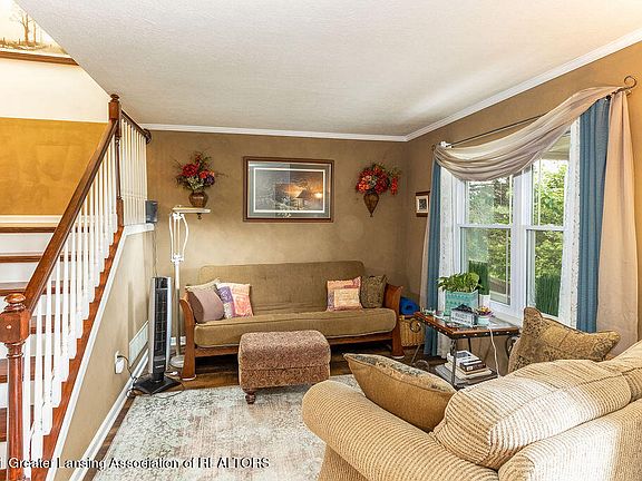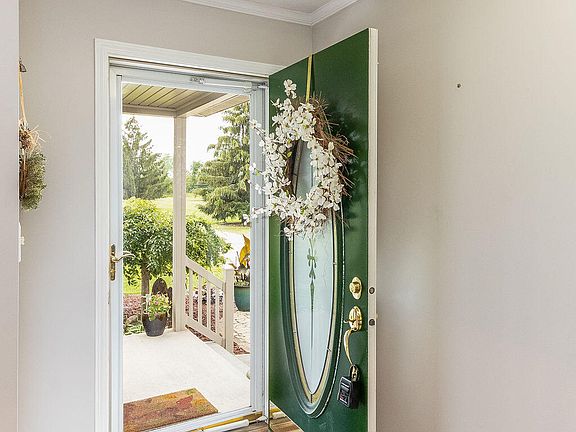 Dona(tm)t miss this beautiful home situated on almost 12 acres with a pond. The serene setting is not just inviting to those looking to get out of the city but also an abundance of wildlife. Pulling up you notice the long driveway, mature trees and landscaping around the home. Once inside, you will notice a cozy sitting area to your right, continuing through the hallway you will enter into the living room, complete with brick surround gas burning fireplace and sliding door to the back deck. Next stop is the kitchen and it is a good one. Soft close cabinets with custom slide outs (one specifically for a KitchenAid mixer), quartz countertops, stainless steel appliances, farmhouse sink and a huge island are just some of the features boasting from this kitchen. Dining room and half bath finish off the main level. The upper level includes the primary suite with full bathroom and walk-in closet, the additional bedrooms and another full bath. Additional features include full basement