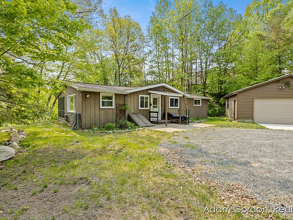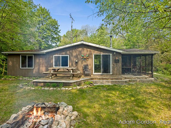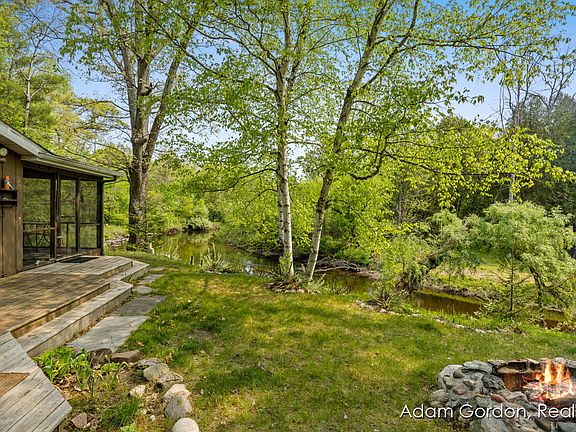 PERE MARQUETTE RIVER-BIG SOUTH BRANCH Welcome to a very special piece of up north serenity. Used year round as a vacation retreat this 3 bedroom/1 bath river side cabin is perched perfectly on the bank, steps from the water. Stairway into the water makes access to the swimming hole and stellar fishing area a breeze. Enjoying the custom-made stone fire pit or using the screened in porch are just a couple of great ways to enjoy the one-of-a-kind views both up and downstream from this special bend of the river. Long driveway, large lot surrounded by woods and a 2 stall garage make the back yard as tranquil as the front. Walking into the cabin you will be immediately drawn to the panoramic views as you are surrounded by windows looking out at the park like setting of trees, flowers and... wildlife. Close to many state and federal lands for hunting, river access and general enjoyment- the nearest being right at the end of the private drive. Open floor plan, cathedral ceilings, exposed beams and wood stove make this warm, cozy cabin extra inviting with room to invite friends and family. A must see to appreciate!