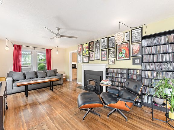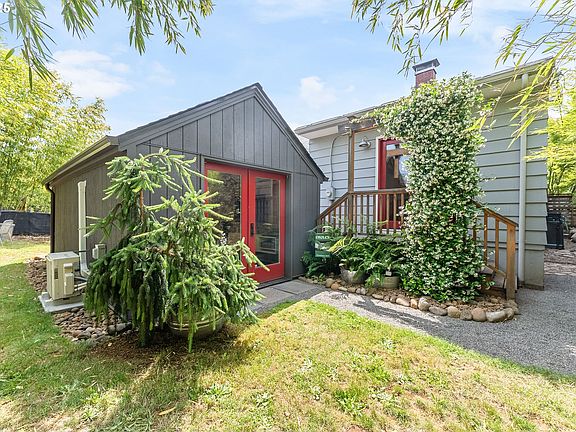 This two-bedroom bungalow in Portland’s Woodstock neighborhood sits on a 4,800 square foot corner lot and blends classic charm with practical updates. Inside, you’ll find original hardwood floors, a wood-burning stove, and a flexible layout with a large eat-in kitchen featuring maple cabinets, exposed brick, marmoleum flooring, and a walk-in pantry. Upstairs includes the second bedroom and a spacious open loft—ideal for a home office, studio, or additional living space. A detached studio adds valuable versatility, complete with vaulted ceilings, heating and cooling, and a half bath—perfect for a private office, guest quarters, or creative retreat. Additional storage is located behind the studio, and off-street parking is available in the alley-access driveway. Just minutes from the shops, restaurants, and parks of Woodstock and Foster, this move-in-ready home offers comfort, character, and convenience in a well-connected SE Portland location. [Home Energy Score = 2. HES Report at https://rpt.greenbuildingregistry.com/hes/OR10239405]