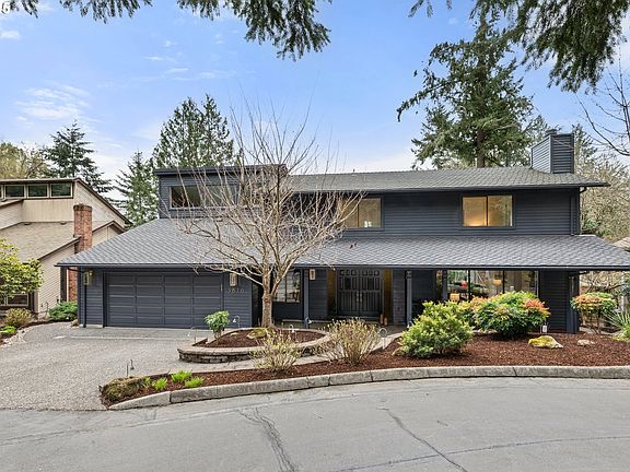 This chic 1970s NW Contemporary home in the desirable West Hills redefines both comfort and style. The main floor is designed for effortless living, featuring a sunken living room, formal dining room, cozy breakfast nook, and an additional living room, all complemented by two wood-burning brick fireplaces. The kitchen is outfitted with brand-new stainless steel appliances and chic hardware. Sliding back doors offer seamless indoor-to-outdoor access. Completing the main level is an additional bedroom, perfect for guests or a home office. Upstairs, you'll find four generously sized bedrooms, two full bathrooms, and a one-of-a-kind family room showcasing custom built-ins, vaulted ceilings, and expansive windows. New carpeting in the bedrooms enhances the home’s mid-century modern charm. Thoughtfully refreshed with fresh interior and exterior paint, along with trendy lighting fixtures, this home exudes both style and sophistication.The exterior is immaculately landscaped, with a full cleanup providing a fresh, clean look. In the backyard, a tranquil patio oasis awaits, perfect for unwinding or entertaining. Additional features include a concrete lower patio and a dedicated dog run. Bamboo surrounds the space, creating a sense of privacy and enhancing the ambiance.Located in the peaceful Wilcox West neighborhood on a quiet street, this home offers a spacious, functional layout with stylish design elements throughout. With the Portland Golf Club just nearby, it provides an ideal setting for both comfortable living and easy access to local amenities. This home truly blends practicality with charm, making it the perfect place to call home.