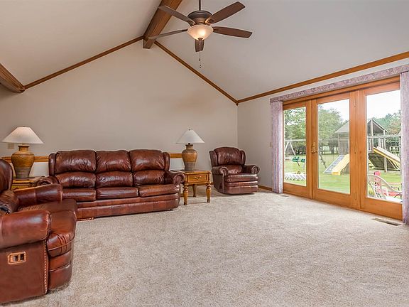 Hard to find all brick ranch home with full finished basement on south side of Auburn. Within minutes of Fort Wayne. 30x32 outbuilding on large 3.64 acre lot. This efficient 3 BR, 2 1/2 BA home was built with 2x6 walls, Anderson windows, high efficiency natural gas furnace and tankless hot water heater. Relaxing next to the large gas fireplace, on can admire the great rooms cathedral ceiling and french doors opening to the back patio with gas grill. Boasting an eat-in kitchen and separate DR, this home features solid oak six panel doors, crown molding, plus a fresh coat of paint and new carpet throughout home. His and her closets are found in the MBR, with an en-suite offering a Jacuzzi tub, double vanity, and private water closet with shower. The full finished basement offers a large room for entertaining which is plumbed for a wet bar and comes with a full sized billiards table, plus a quiet room for an office or den. A two car attached garage is dry walled, with a finished floor, and storage above with pull-down attic stairs. The dreamlike outbuilding was constructed with 2x8 walls, has wood stove heat and a walk up attic for additional storage. Outdoor lovers will adore the large covered front porch, beautiful back yard and the property's apple and mulberry trees. All appliances stay with home, including washer & dryer.