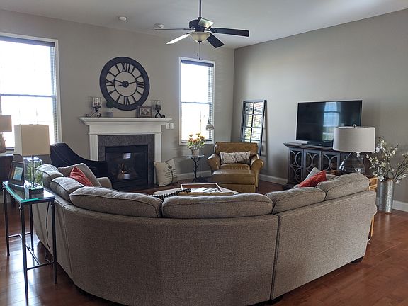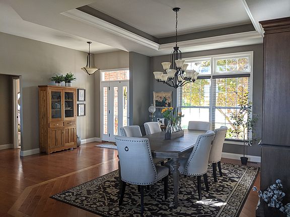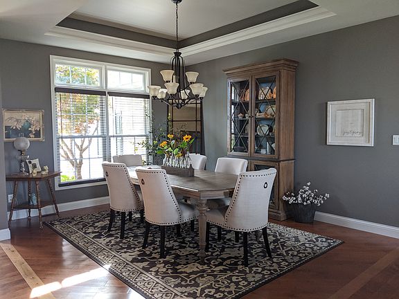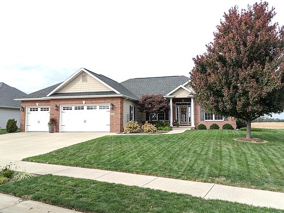 Sale Pending. Great location! 4 bedrooms; 3 full baths. Split bedroom floor plan. Kitchen updated with quartz countertops and new island. Glass-enclosed spa shower and jetted tub in master bath. Main floor laundry/mud room with built-in cabinets and sink. Gas fireplace. Finished lower level has family room with wet bar, bonus room for possible office, large bedroom, and full bathroom. Basement also has a separate unfinished storage area. New sump pump with water pressure back up system. Three-car garage. In-ground irrigation system; new landscaping. Private backyard with open farmland view. All appliances, including washer and dryer, stay.
