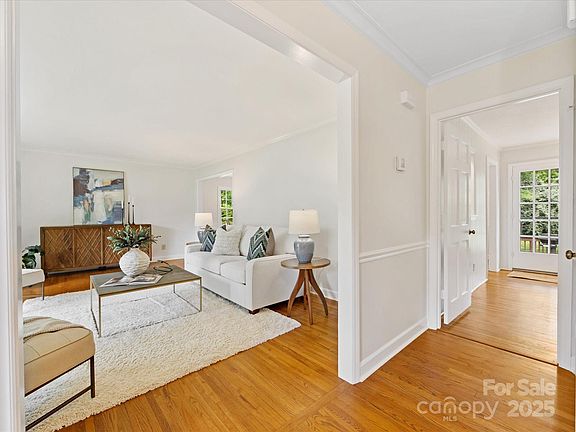 Traditional two story located in the popular Stonehaven/Sherwood Forest neighborhood. Beautiful fenced in backyard backing to trees. Lovely hardwood flooring throughout the home both downstairs and up. Fresh neutral paint throughout interior, as well as much of exterior. Living room with large bay window and natural light, kitchen with stainless appliances and granite countertops. Eat-in breakfast area overlooks large backyard. Upstairs you will find a spacious primary with recently renovated primary bathroom. Three additional bedrooms with nice closets plus another full bath. Both front and backyards are perfect for hours of play or entertainment. The back gate takes you directly to Rama Road Park with large field and playground equipment. HVAC 2024, sealed crawlspace 2022, dishwasher 2023. Fridge, washer/dryer and playground equipment can convey! Parks all around and convenient to Cotswold, Southpark, MoRa and uptown Charlotte!