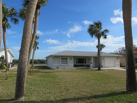 65 ft of waterfront property is located in a quiet Port Orange neighborhood, on the west side of the Halifax River. This 3 bedroom, 2 bath home features a spacious open floor plan. The family room offers panoramic views of the Halifax River, where you will enjoy a beautiful sunrise every day. Watch the manatee, dolphins, and pelicans, and enjoy the wide variety of coastal nature all from the comfort of your home. This home has been maintained in excellent condition. Present owners have resided in the home for over 25 years and the pride of ownership shows.