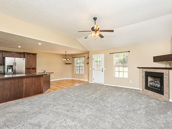As soon as you walk in you'll be impressed by this move-in ready home with a great open layout and all the amenities! The real hardwood floors will lead you to a bright and airy living area with raised ceilings and a gas fireplace. The spacious kitchen has stainless appliances, beautiful cabinetry and bar seating. The split floor plan offers a private master suite with an amazing closet, double vanity sink, and large walk-in shower. Brand new carpet in living room and bedrooms. With a 3-car garage and a fully fenced yard this home has everything you need. Great location just minutes to Wilson's Creek National Battlefield and James River. Built in 2014. Come see this one today!