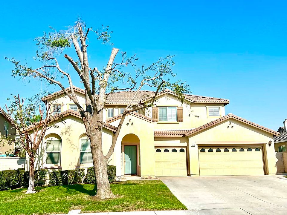 Beautiful and spacious 5-bedroom, 4.5-bathroom Eastvale home offering approximately 3,300 square feet of living space with an open floor plan and soaring high ceilings. This home features brand new carpet, new paint throughout, providing a fresh and move-in-ready interior. The main-floor bedroom suite includes a private full bath, ideal for guests or multi-generational living. The kitchen features a large center island, ample cabinetry, and opens to the family room for easy entertaining. Upstairs offers a large loft area, perfect for a home office, study, or media space. Two bedrooms share a Jack & Jill bathroom with dual sinks, and there is an additional full bath conveniently located near the loft. The primary suite includes dual walk-in closets and a spacious en-suite bathroom with dual vanities, a soaking tub, and separate shower. Additional features include a three-car garage, laundry room, and private backyard. Located near shopping, dining, entertainment, and top-rated Eastvale schools. Owner pays for gardener. Tenant is responsible for all utilities. No smoking allowed.