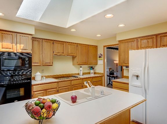 Welcome to this well maintained Mukilteo home! Enjoy the privacy w/greenbelt behind. Open floor plan w/vaulted ceiling & skylights provide plenty of natural light throughout. Kitchen w/lots of counter & cupboard space. Master bedroom w/walk in closet &5pc bath. Three add'l good sized bedrooms. Extra storage under stairs. Patio & deck space for BBQs + shed, walking path & firepit area in large, fully fenced backyard. Newer 30 yr roof. Award winning Mukilteo SD. Close to Boeing, freeways & more.