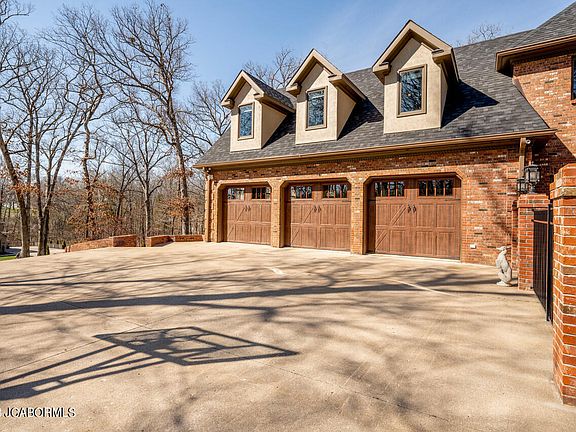 This magnificent executive home on acreage in gated lake community has been updated top to bottom - even the 3 car garage has had a makeover! No expense was spared in the original custom construction or in the extensive remodel. The spacious kitchen has granite countertops, walk-in butlers pantry, island bar w/sink & large breakfast area plus adjoining hearth room. Entertainers will be delighted in the choices for gathering whether in the living room w/soaring ceiling, dining room with views of front veranda or entertain outdoors under the 2 covered porches or extensive patio. Gigantic main level primary bedroom has adjoining office/nursery, tiled dual shower, free standing tub & closet w/custom organizers. Explore the upper level from either the sweeping curved staircase from the front entry foyer or the back staircase from the kitchen & you'll find 2 more bedroom, a Jack-n-Jill bath plus 35 ft game room currently being used as a bedroom. Bedroom 4 in the lower level has brand new carpet & quick access to full bath. Lots of room to expand plus tons of unfinished storage area. Newer scraped wood floors throughout, newer lighting, designer paint, window treatments & park like fenced yard. All this plus half ownership in the adjoining 2+ acre lot! Hot tub & entertainment center in living room stay.