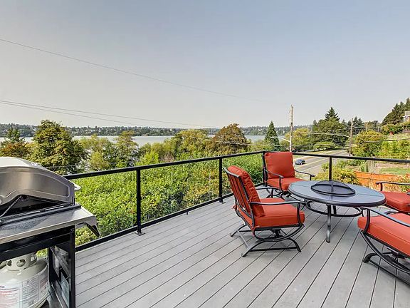 Beautiful lakeside property with gorgeous views from multiple vantage points, including a large and comfortable deck space. Main floor includes a chef's kitchen with stainless steel appliances, dining nook, a powder room and living space that leads out to the deck. Basement level has a separate entrance, a day bed (twin) and a full bathroom. The second floor includes the master suite with a balcony and lake-view, along with a second bedroom and full bathroom. Renter is responsible for water, trash, gas, electric, internet and cable. Security deposit, cleaning fee and 1st and last months rent due at time of signing.