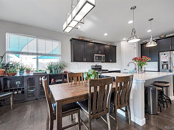 Enjoy breathtaking southern views from the extended deck, perfect for relaxing evenings and outdoor dining. The built-in barbecue enhances the outdoor experience, making it ideal for hosting gatherings and enjoying the Colorado sunshine. The primary bedroom features a charming bay window that adds architectural interest and frames the picturesque views. A custom closet provides ample storage, and the attached 4-piece bathroom offers convenience and luxury. The kitchen is equipped with solid surface counters that are both elegant and easy to maintain. A gas stove enhances cooking efficiency and precision, catering to culinary enthusiasts. A custom bannister adds a touch of craftsmanship and character to the home, enhancing the staircase area with its unique design. The walk-out basement is a versatile space featuring a 144-inch diagonal projection TV, perfect for movie nights or watching sports events. A kitchenette adds convenience for snacks and drinks. The basement also includes a bedroom with a 4-piece bathroom and a large walk-in closet, offering privacy and comfort for guests or family members. Enjoy energy efficiency and savings with a fully paid-off solar system, contributing to lower energy bills! The landscaping is meticulously designed and includes: 6 4x8' raised flower beds, offering space for gardening and floral arrangements. 4 mature blaze maples and 2 linden pines, adding shade and beauty to the yard. Various plants including lilacs, roses, and clematis, enhancing the outdoor aesthetics. Fruit trees including 2 apple trees and 2 cherry trees, providing seasonal fruits. 8 aspen trees, adding a natural touch and visual appeal to the property. Price reduced to sell!